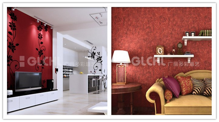 一、紅色是最搶眼的顏色,與在視覺(jué)上起收縮效果的藍(lán)色相比,紅色對(duì)視覺(jué)起強(qiáng)烈的沖擊作用。所以使用上,一定要注意緩和壓迫感,在使用量上要控制在總量的2成左右,或者不用鮮亮的紅色,而改用灰色調(diào)或暗色調(diào)的紅色,廣麗建議盡量將有強(qiáng)烈視覺(jué)沖擊的顏色用在局部裝飾中,例如背景墻的裝飾,可使用廣麗森特壁材系列藝術(shù)涂料與這類顏色進(jìn)行搭配,即體現(xiàn)質(zhì)感,又能讓房間墻面產(chǎn)生亮點(diǎn)。