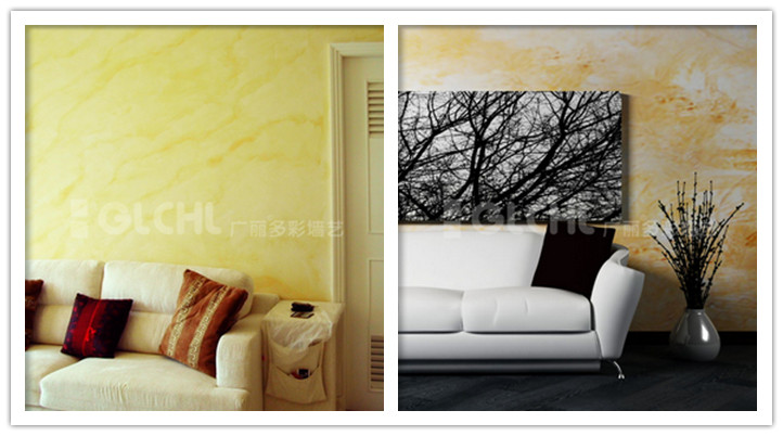 3、藝術(shù)涂料最大的賣點除了環(huán)保,就是裝飾效果了,廣麗多彩墻藝市場部王經(jīng)理介紹說:“眾所周知,墻紙有著很漂亮的花紋及質(zhì)感,但是無論多有技術(shù)的施工人員,貼出來的墻紙,都會看得出明顯的接縫,達(dá)不到完整一體的裝飾效果,而藝術(shù)涂料,除了可以做出墻紙一樣的花紋和手感,還可以實現(xiàn)顏色和花紋完全量身訂制,就是說客戶喜歡什么顏色的花,想要什么風(fēng)格的裝飾效果,都能全做出來,要讓墻面復(fù)古還是時尚,全由客戶作主,這點,目前只有墻藝藝術(shù)涂料能做到”